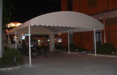 構造方式的簡潔明了,以及簡潔的設計、製造工藝流程,交互作業的機製,使得這(zhè)種構造類型製造工期大大縮短;可調節及裝(zhuāng)卸的節點方式使得移動工程變為可能。選用的(de)材料是高強度的鋁合金型材,外表靜電粉末噴塗塗層,耐久性30年(nián)以上;且(qiě)重(chóng)量輕,相當於通常鋼構造屋麵的1/10;所以能滿足雨棚(péng)大跨度的請求。